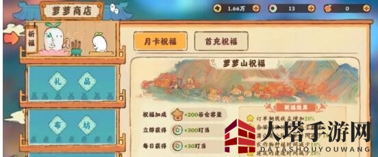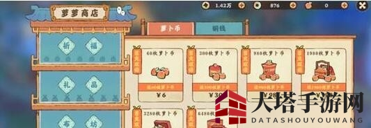 在萝萝商店,祈福、礼品、布坊和充值四大板块等你探索。而充值,正是为了兑换宝贵的萝卜币,它的价值不言而喻;