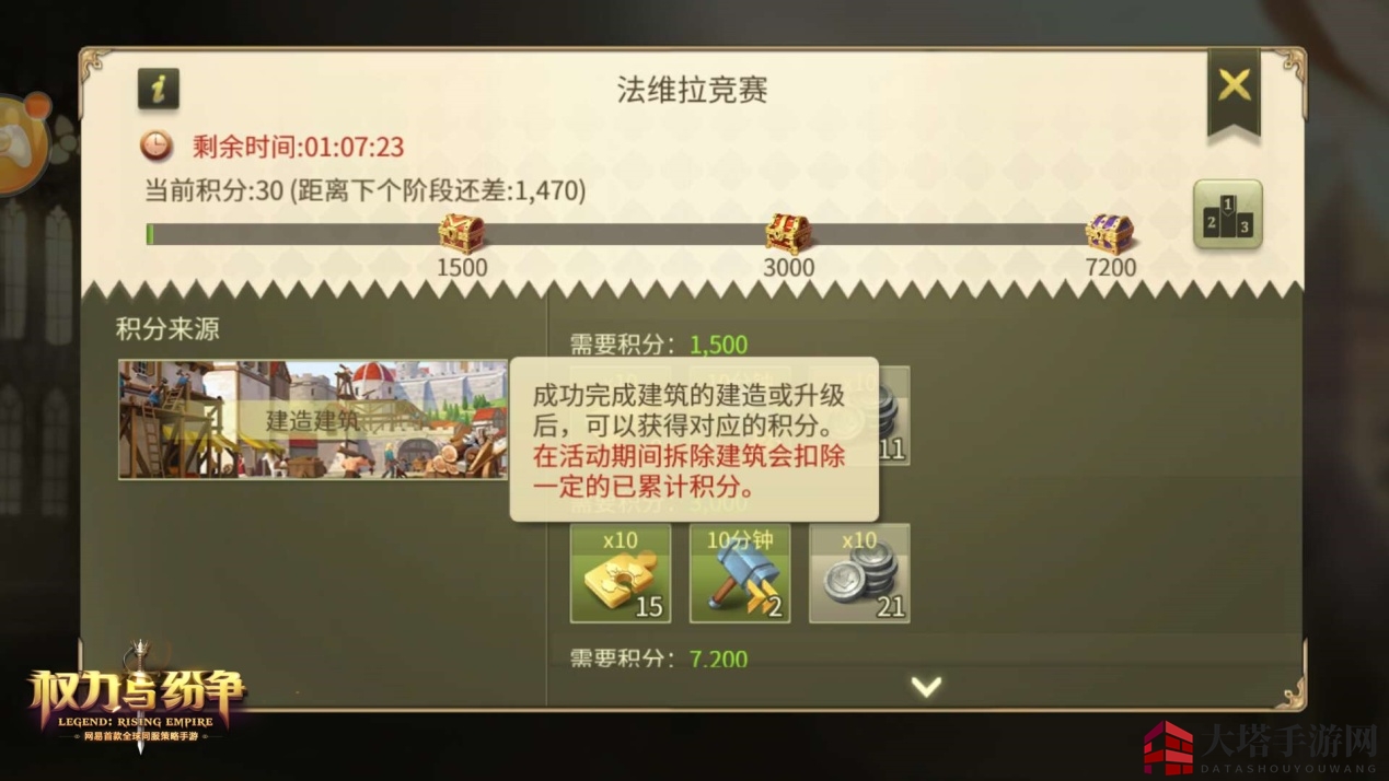 “法维拉竞赛”对玩家提出了限时挑战,需要精确计算建设时间、土地、兵力等因素。例如,在建造任务中,玩家需合理规划土地和建筑,以最大化资源利用。