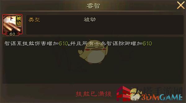 特效:智谋系技能加伤,所有士兵智谋防御增加
