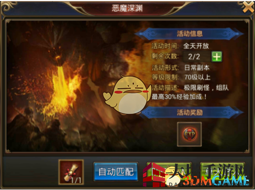 3、别错过贪婪的哥布林的升级机遇,它能提供30%的杀怪经验。最佳时机是它出现时完成主线任务,时间允许的话,挑战恶魔深渊也是不错的选择;
