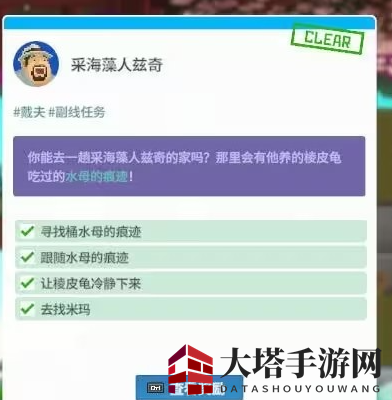 2、任务完成后,前往深海采藻人家外,就有机会遇到采藻人和他的龟,拍照即完成任务。