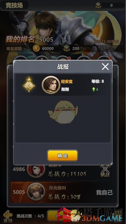 游戏主城内,轻点“挑战”按钮,即可开启竞技场的大门。