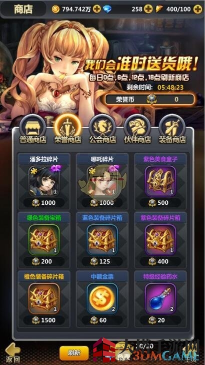 “荣耀宝库”功能让您轻松兑换游戏道具,如英雄碎片、装备碎片箱、金票和经验药水等。战斗和排名奖励的荣誉值,是您开启宝库的钥匙。
