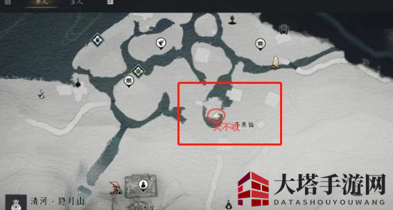 3、打开游戏地图,定位至不羡仙的店,寻找任务关键【天不收】。