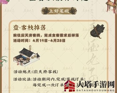 4、获取上好笔砚:前往应天府客栈,完成食客需求,每完成一次订单,即可获得上好笔砚*1。