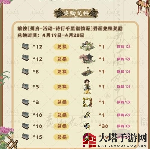 6、兑换奖励:前往州府-活动-诗行千里谱情深界面,即可兑换你心仪的活动奖励。
