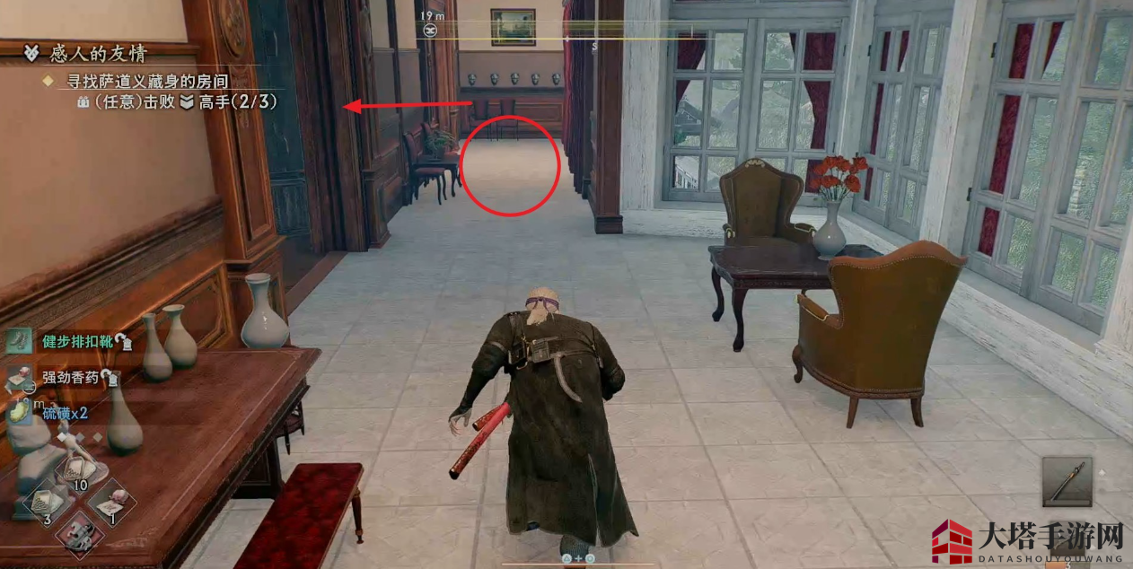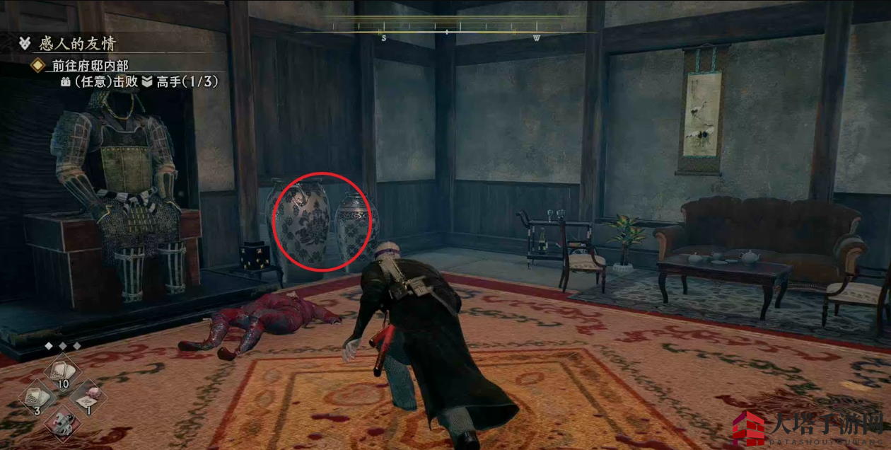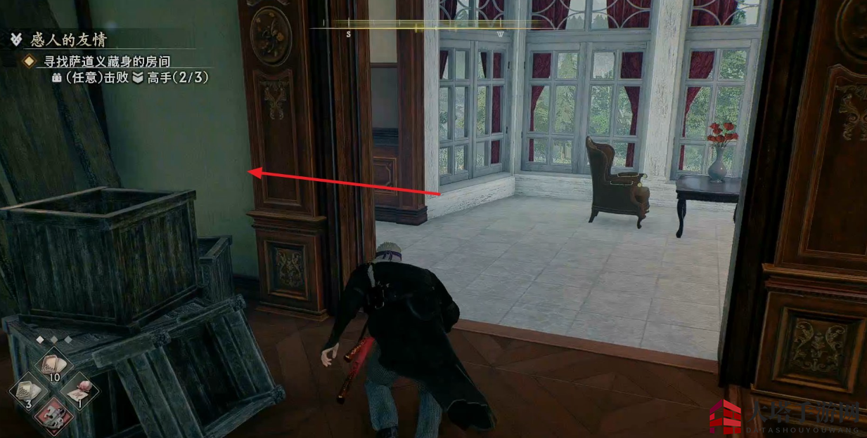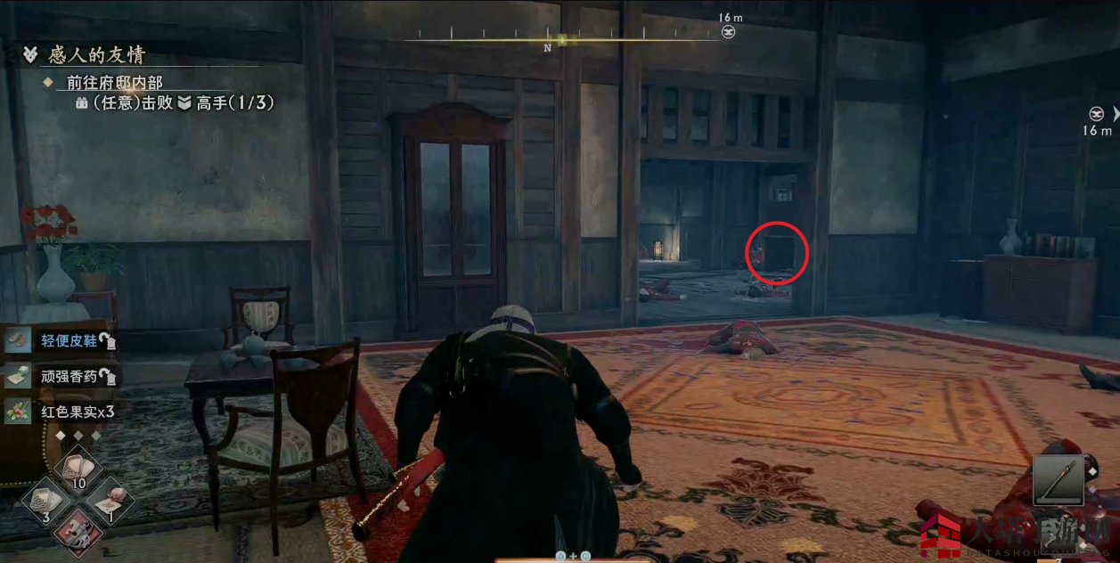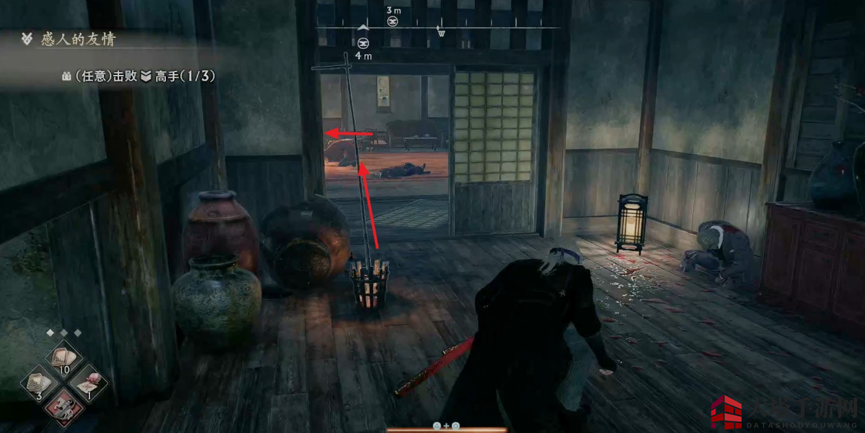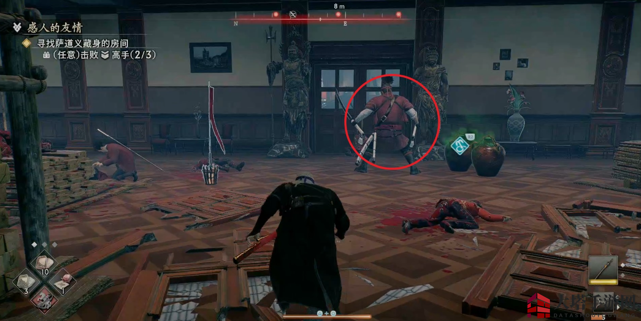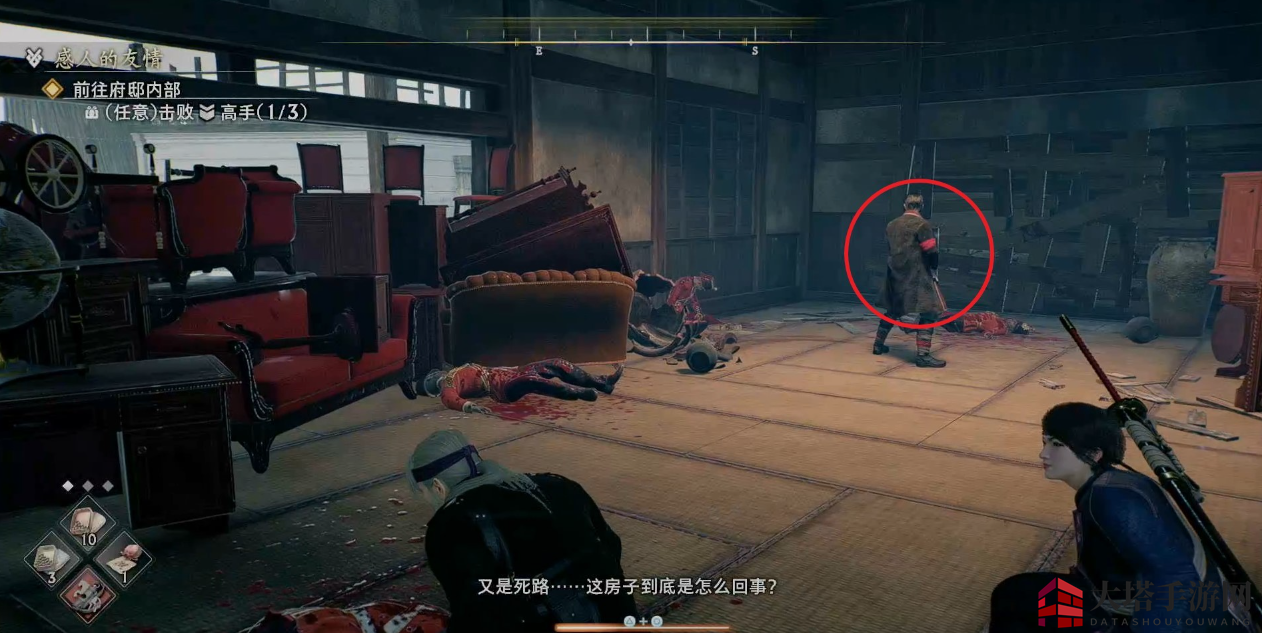 注意左转后有一个敌人会在门旁边偷袭我们。